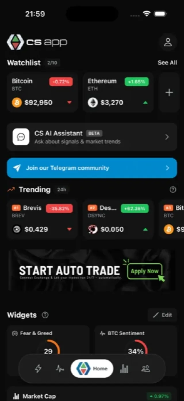 Monitor key market indicators to make informed trading decisions. Fear & Greed Index, Bitcoin Dominance, and Altcoin Season Index.